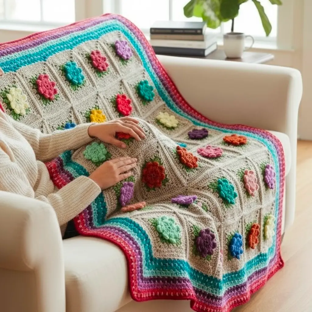 - Pattern: Granny squares, chevron, or solid weave