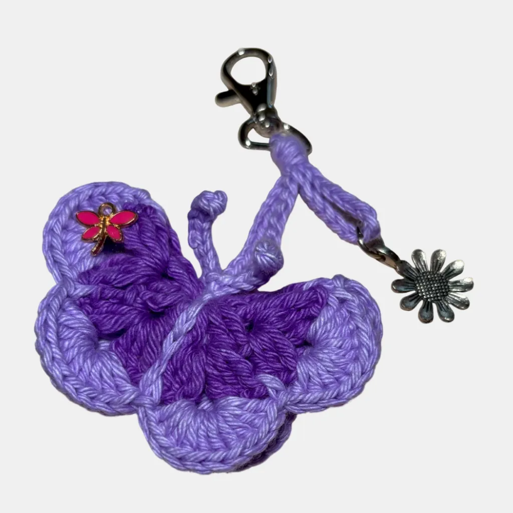 Light, airy, and effortlessly charming, the Lilac Wind Butterfly brings a touch of pastel elegance to your everyday essentials. Handcrafted with premium cotton yarn, this crochet keyring features delicately shaped wings in soothing lilac tones, inspired by gentle breezes and blooming spring days. Lightweight yet sturdy, it’s perfect as a thoughtful gift or a whimsical accessory to brighten up your daily carry.